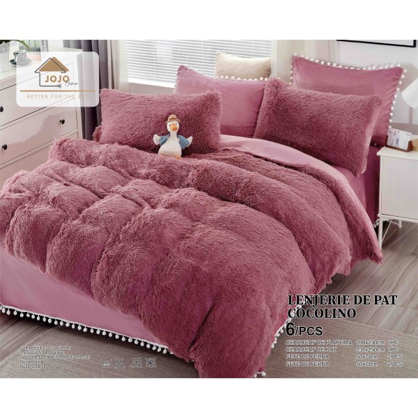 Confecționată dintr-un material moale și pufos la atingere, lenjeria Cocolino este alegerea potrivită pentru confortul casei tale. Microfibra plușată numită fleece din care este alcătuită se potrivește perfect anotimpului rece. Modelul deosebit satisface până și cele mai rafinate gusturi. De la mic la mare, întreaga familie se va bucura de clipe de liniște in propriul cămin.