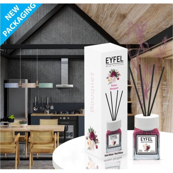 Odorizant de camera marca EYFEL special creat pentru a oferi un amalgam de senzații olfactive. Îți inundă simțurile cu arome calde și creează o atmosfera plăcută în orice încăpere. Funcționează prin evaporarea substanței prin bețișoarele de ratan, acesta emană treptat aromele pentru o durata îndelungată.